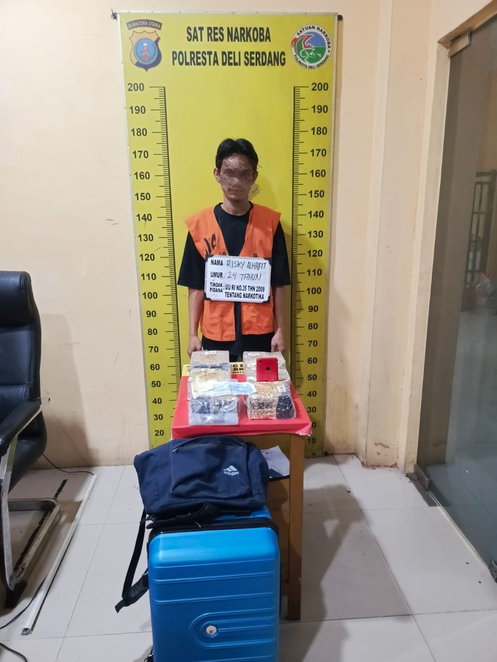 Pengungkapan terjadi pada Rabu (4/2/2026) di Jalan Lintas Medan–Lubuk Pakam, Lubuk Pakam, Deli Serdang. Tersangka RAS (24), wiraswasta asal Kabupaten Bener Meriah, Aceh, berhasil diamankan bersama enam bungkus sabu, koper, tas ransel, ponsel, dan tiket bus.